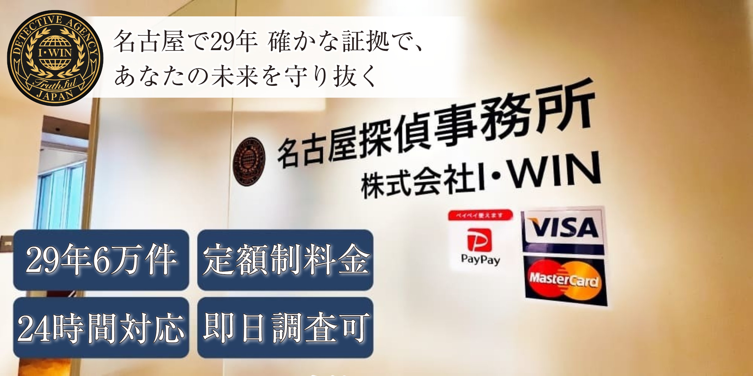 近年、当事務所と類似した名称を名乗る探偵業者が確認されています。名古屋探偵事務所は、名古屋市中区丸の内の『株式会社I・WIN』が運営する創業29年の事務所です。